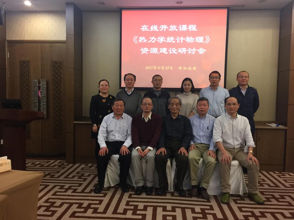 为推动高校在线开放课程群建设,促进优质教学资源在教学中的广泛应用,推动教学模式改革,进一步提高教学质量,2017年10月28日至29日于呼和浩特举行了“在线开放课程《热力学与统计物理》资源建设研讨会”。参会人员包括厦门大学陈金灿教授,北京师范大学包景东教授,湖南大学刘全慧教授,兰州大学谭磊教授,yl23411集团官网梁希俠教授,班士良教授,宫箭教授,赵国军教授,崔鑫副教授,宋铁磊博士,高等教育出版社理工出版事业部忻蓓编辑。