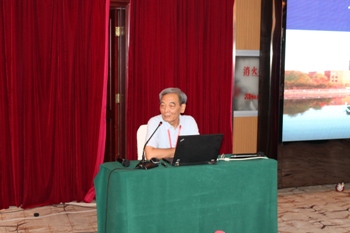 | 教育部大学物理课程教学指导委员会副主任委员、上海交通大学胡其图教授出席会议并作报告 |