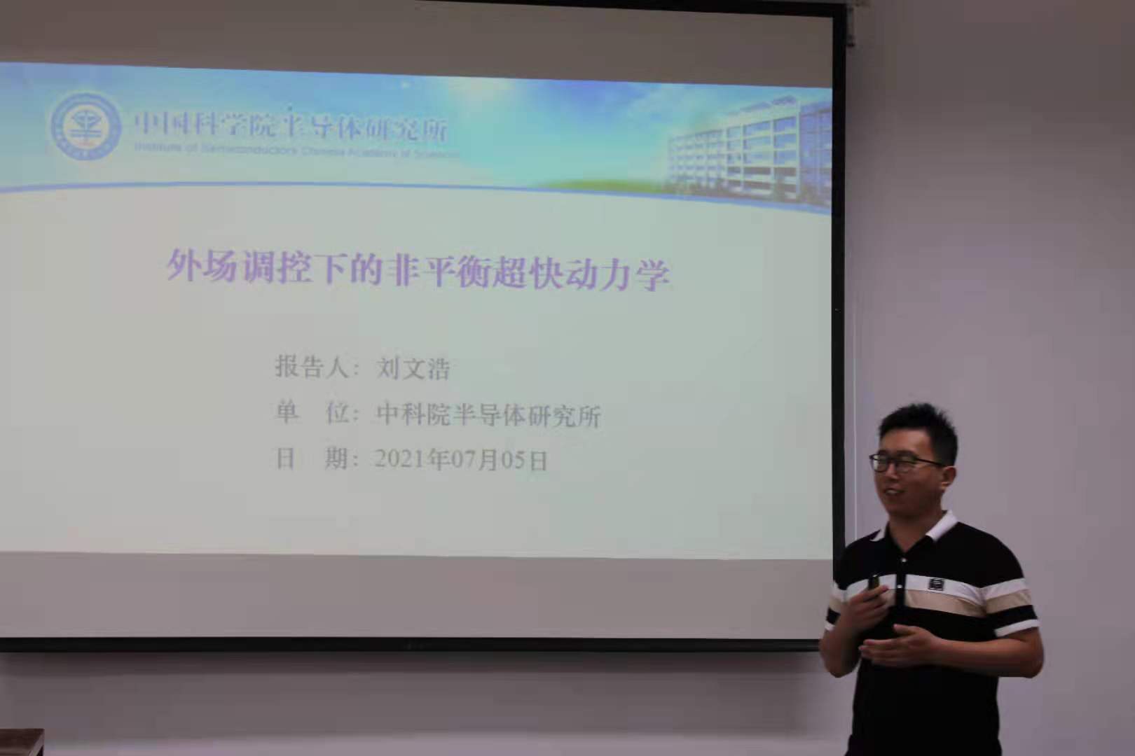 2021年7月5日下午中国科学院半导体研究所刘文浩博士应邀来我院,在主楼0309作了题为“外场调控下的非平衡超快动力学”的学术报告。yl23411集团官网屈媛副教授主持报告,物理学院教师、研究生和本科生60余人参加。