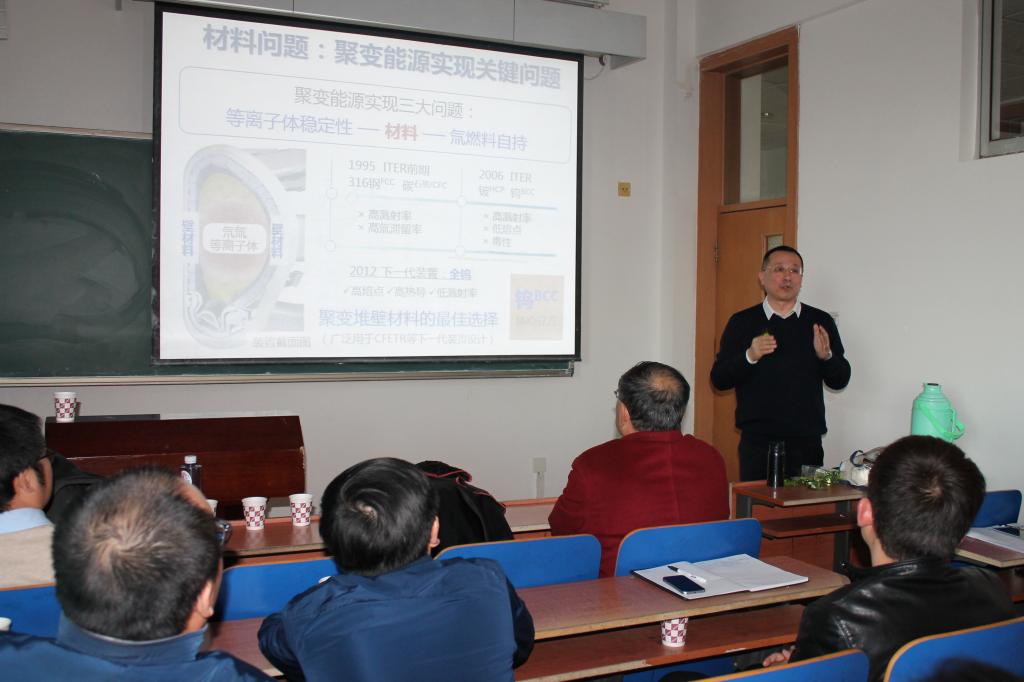 2018年11月15日于综合楼0508,yl23411集团官网邀请北京航空航天大学物理学院院长吕广宏教授作了题为《聚变堆材料辐照效应计算模拟》的报告。yl23411集团官网的教师和学生70余人参加了本次报告会。