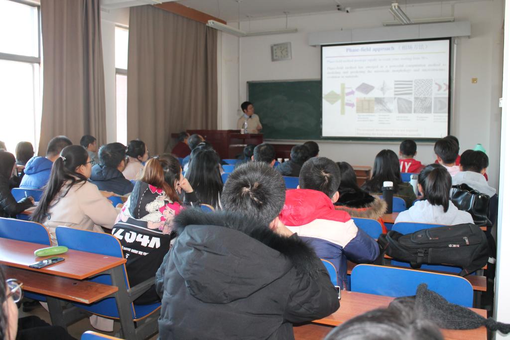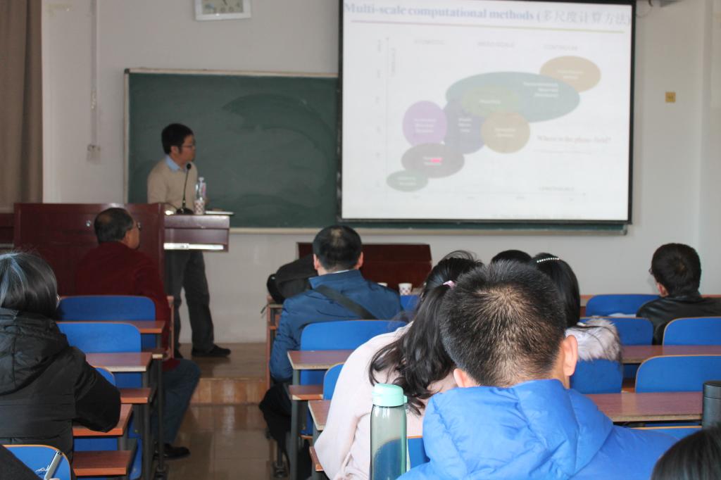 2018年11月15日于综合楼0508,yl23411集团官网邀请北京航空航天大学物理学院梁林云教授作了题为《相场方法预测核材料中辐照微结构和性能演化》的报告。yl23411集团官网的教师和学生70余人参加了本次报告会。