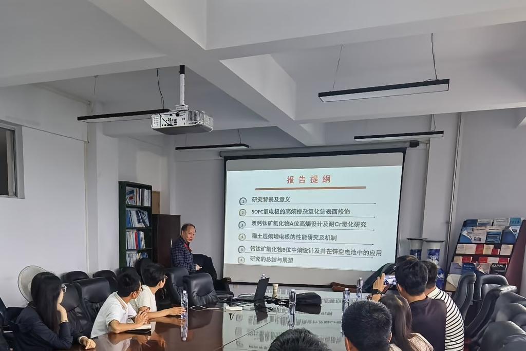 燃料电池具有很高的能量转化效率,是极具发展潜力的新能源发电装置。通过多种金属元素掺杂,提高氧化物电极材料的构型熵,可显著改善其电极性能和稳定性。本报告介绍了哈工大物理学院新能源材料物理与技术团队近期为探究固体氧化物燃料电池(SOFC)氧电极材料的中高熵化所带来的性能提升作用及相关机制方面的研究成果。高熵掺杂氧化铈(HEDC)修饰的镧锶钴铁氧电极、A位多元稀土掺杂合成单相高熵双钙钛矿氧化物以及稀土层中熵材料都成功实现了对SOFC氧电极电化学活性与耐Cr毒化能力的提升,结合理论仿真阐明了稀土层熵增对Sr偏析抑制的相关机制。在进行B位多元过渡族金属掺杂,制备的中熵氧电极具有更优异的双功能氧电极,成功用于可充电锌空电池。报告引起了教师和学生们广泛兴趣,就中高熵氧电极材料研究与设计展开了深入交流。