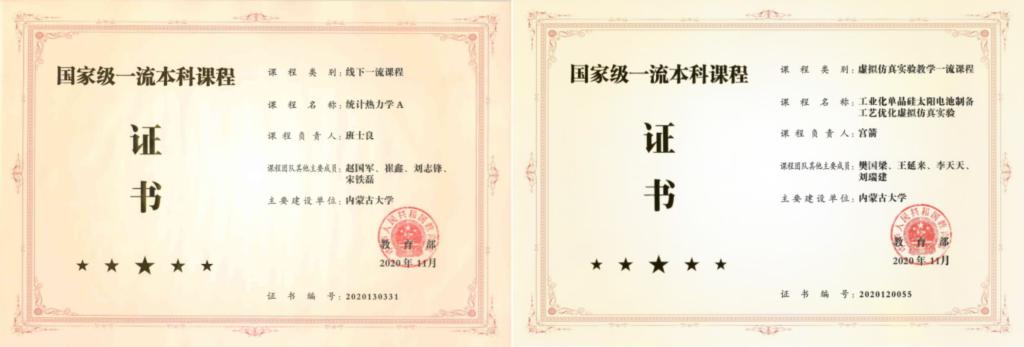 国家级一流本科课程荣誉证书