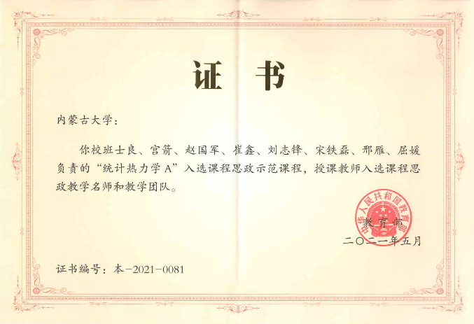 依据学校制定的相关制度文件,建立教师职业道德规范,实施师德师风考核,落实师德“一票否决制”。确定专业建设目标及专业质量标准,对专业设置与调整、重点专业建设等方面实施过程管理。对课程内容、教学团队、课程资源等方面的建设与改革实施过程管理和质量评估。支持课程群负责人组织编写适合地方大学人才培养的高水平教材。对教材编写、出版、修订、选用进行过程管理。近年来,在高等教育出版社和科学出版社出版高质量教材8部,梁希侠教授、班士良教授编著的《统计热力学》两次入选“十一五”和“十二五”国家规划教材。梁希侠教授编著的《高等统计力学导论》入选科学出版集团“十三五”规划教材。