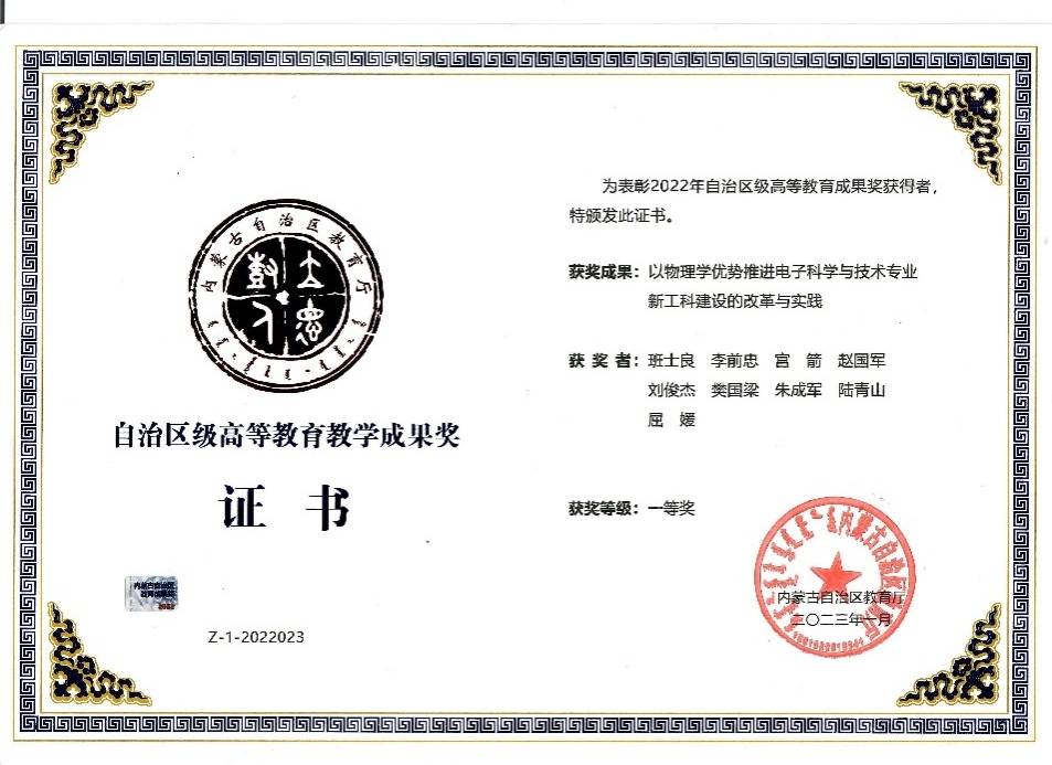 学院以“国家级一流本科专业建设”为引领,以国家级“教学团队”“精品课程”“一流课程”建设为抓手,不断优化课程体系,完善课程团队建设,推进教学模式与改革。学院修订和完善人才培养方案,制定特色鲜明的物理学(数理基地班)、物理学、应用物理学和电子科学与技术专业本科创新人才培养方案和课程体系。学院为专业教学营造良好氛围,提供重组资源,以课程群为基础,组建教研室,鼓励教师积极开展教学研讨和交流,有效提高教学质量。教学改革成果取得重要突破,“统计热力学A”获批国家级线下一流本科课程,“工业化单晶硅太阳电池制备工艺优化虚拟仿真实验”获批国家级虚拟仿真实验教学一流课程。“优势物理学基础推进电子科学与技术专业新工科建设的教改与实践”获得2023年高等教育自治区级教学成果一等奖,“面向少数民族地区在物理学科助力下电子科学与技术专业升级探索与实践”获批教育部2020年新工科研究与实践项目。承担完成国家和省部级教学改革研究项目12项,教育部产学合作项目4项。