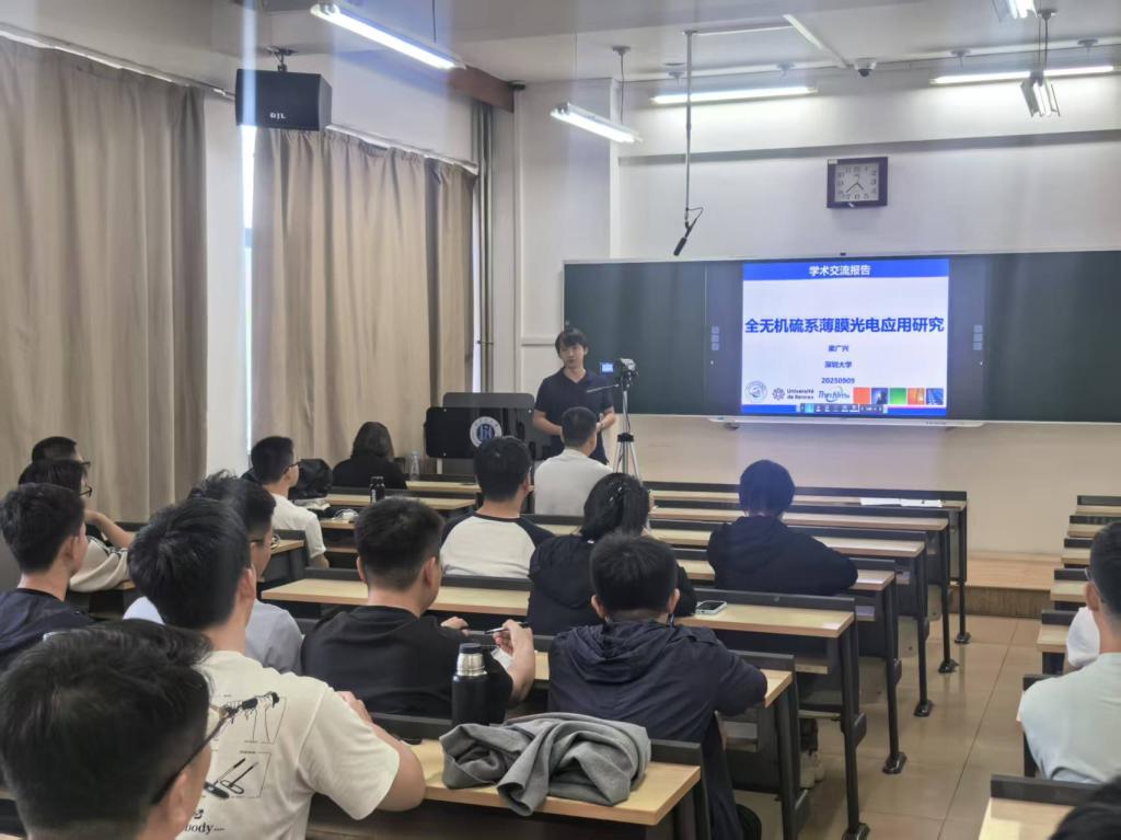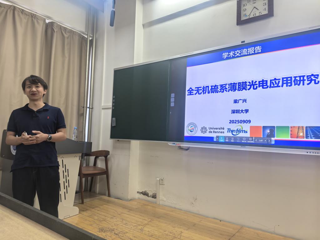 2025年9月9日,深圳大学梁广兴教授应yl23411集团官网邀请在卓越楼0207室做了题为“全无机硫系薄膜光电应用研究进展”的学术报告。yl23411集团官网副院长朱成军教授主持报告。yl23411集团官网物理学院教师、博士后、博士、硕士研究生等参加了报告会并进行交流。